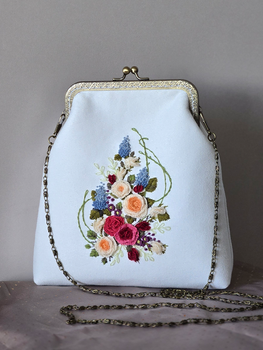 Ручная вышивка: каждый цветок проработан с особой тщательностью, что делает сумочку уникальной.