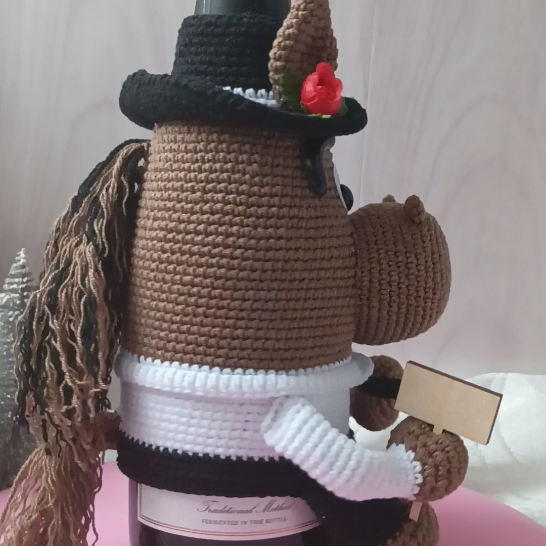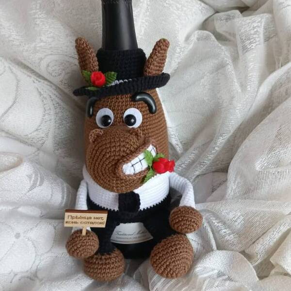 Чехол на шампанское выполнен из хлопковой пряжи.