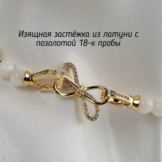 Застежка-бантик из латуни с позолотой 18-каратной пробы, инкрустированная сверкающими цирконами, добавляет шикарный акцент, делая аксессуар идеальным дополнением как для повседневного, так и для вечернего наряда.
