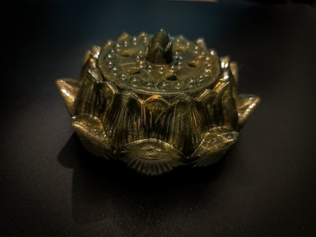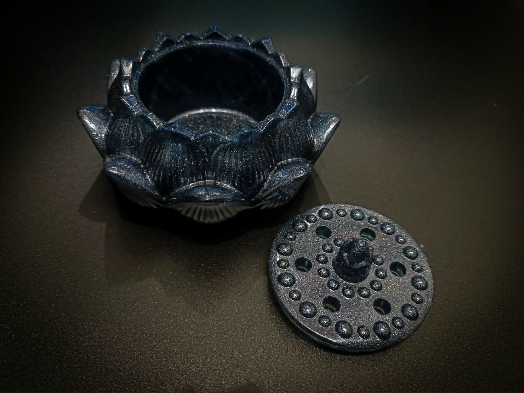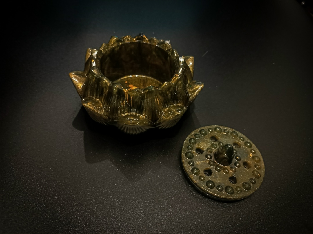 Уникальная шкатулка в форме распустившегося цветка лотоса. Особенность этой модели — отверстия в крышке, которые делают её не просто хранилищем, а «дышащим» сакральным предметом.