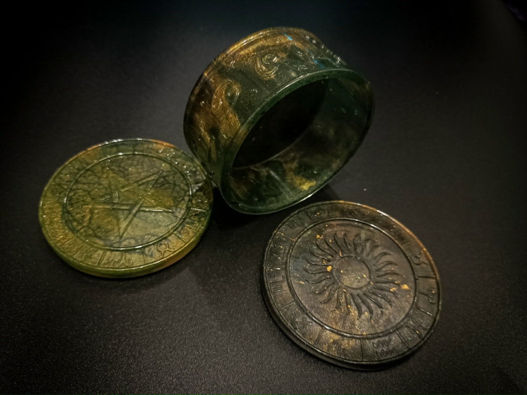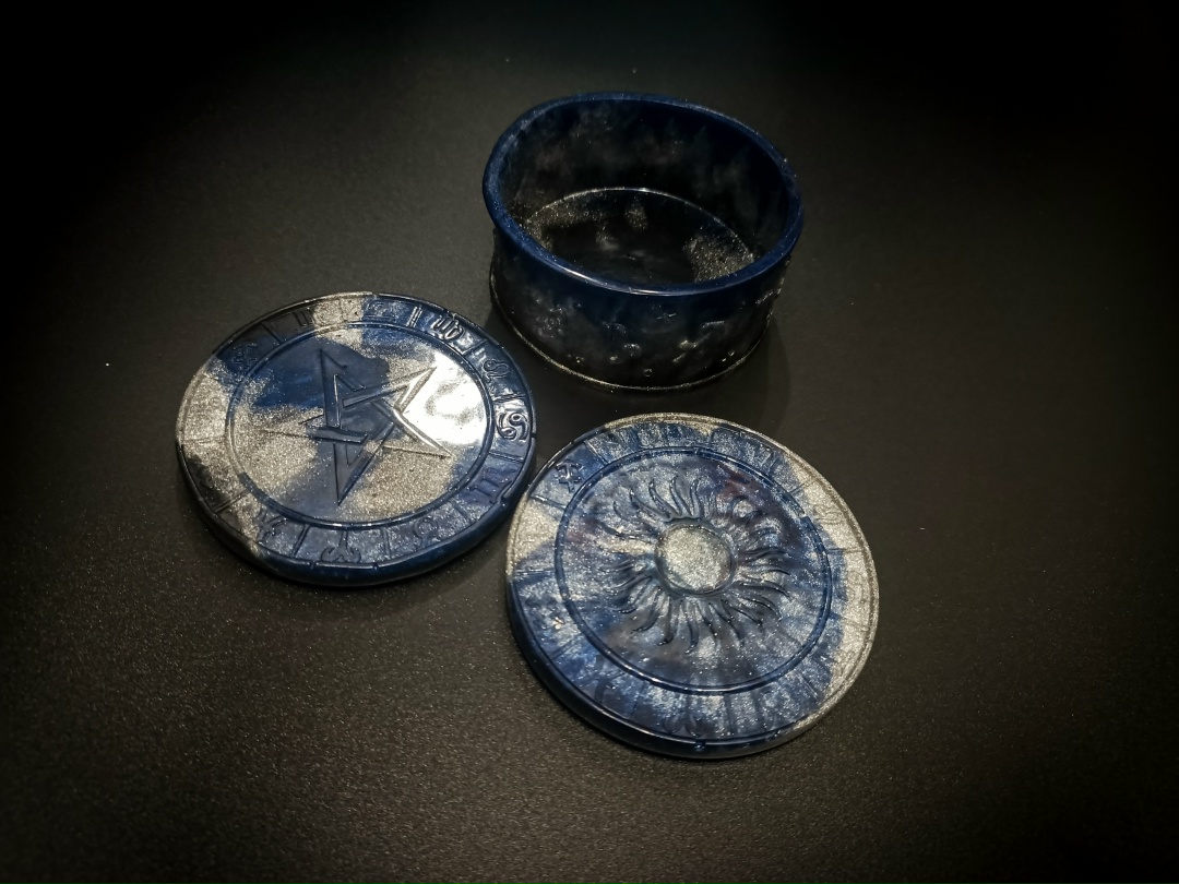 Шкатулка с двумя крышками с символами из эпоксидной смолы