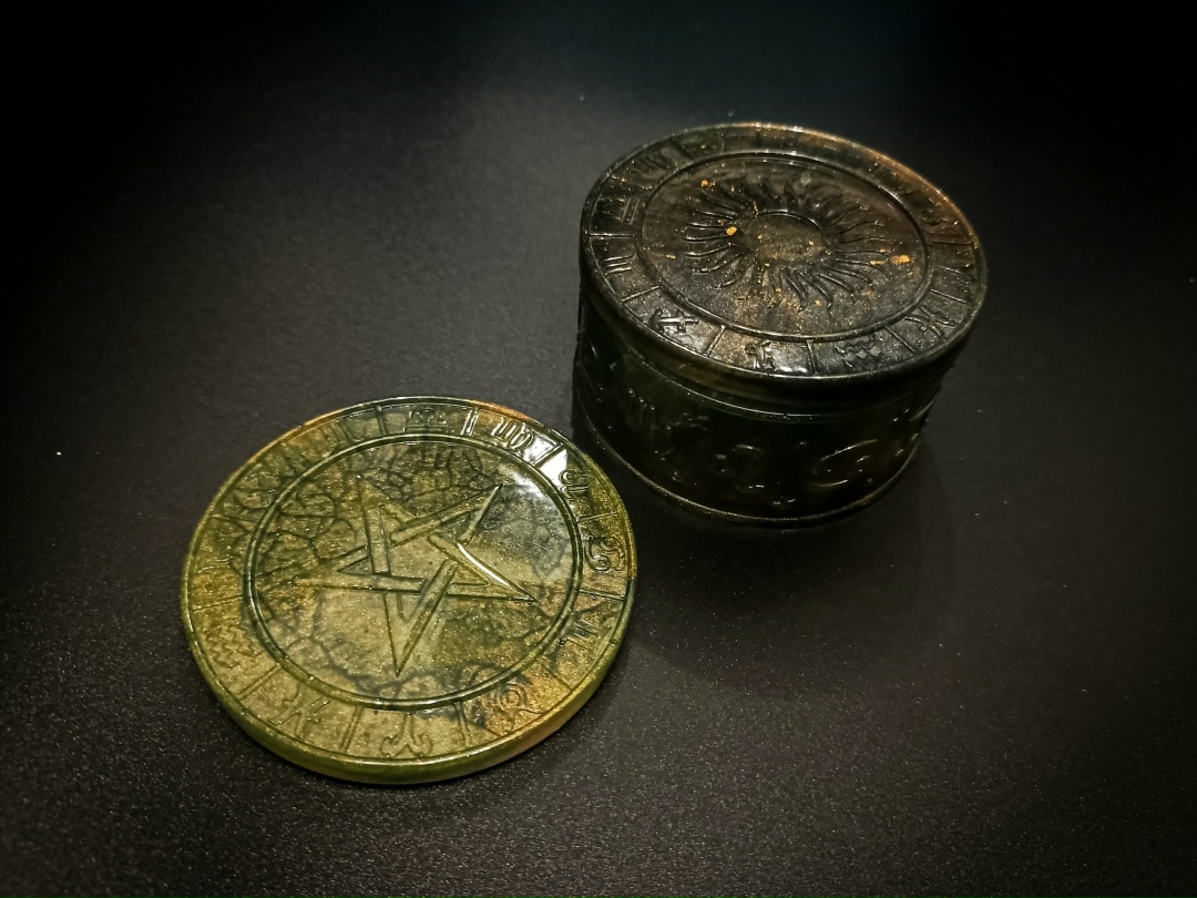 Первая крышка — с изображением пентаграммы (символ защиты, пяти стихий, равновесия)