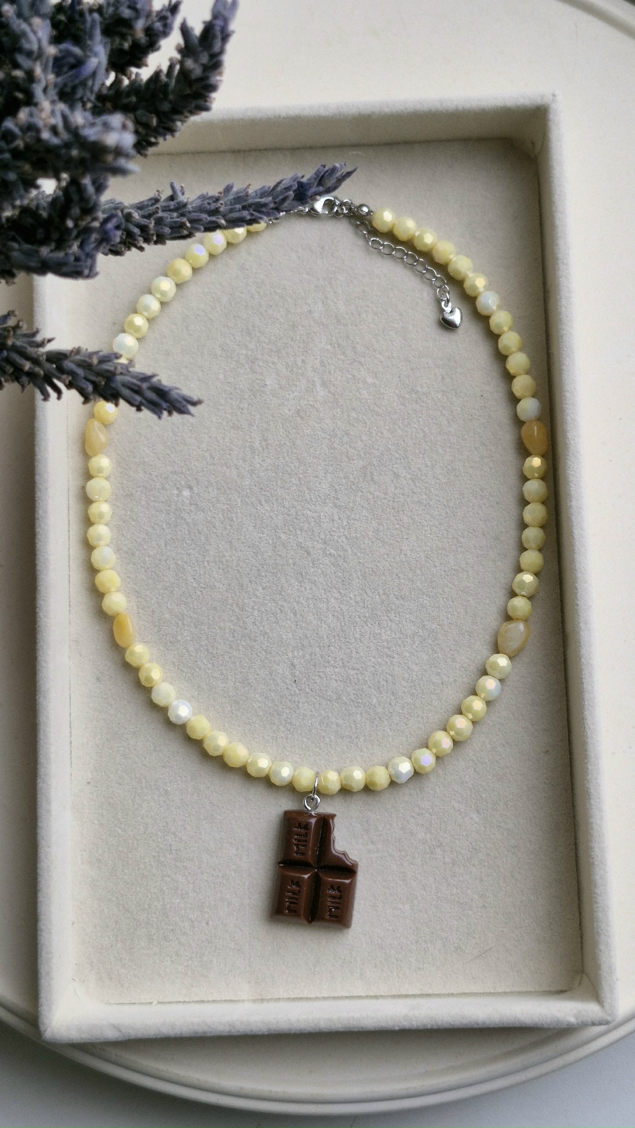3. Чокер из желтого ювелирного стекла со вставками из желтого агата, карабин с удлинительной цепочкой.