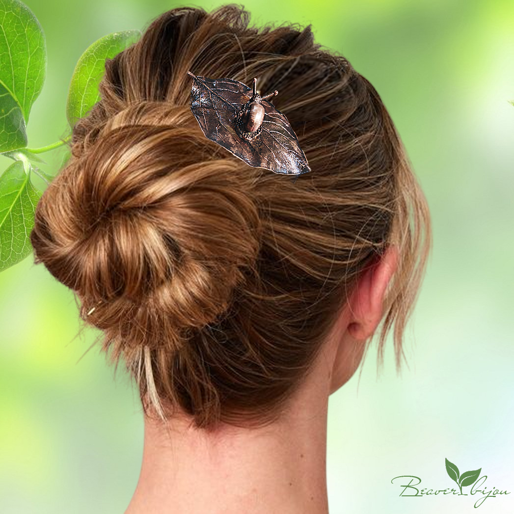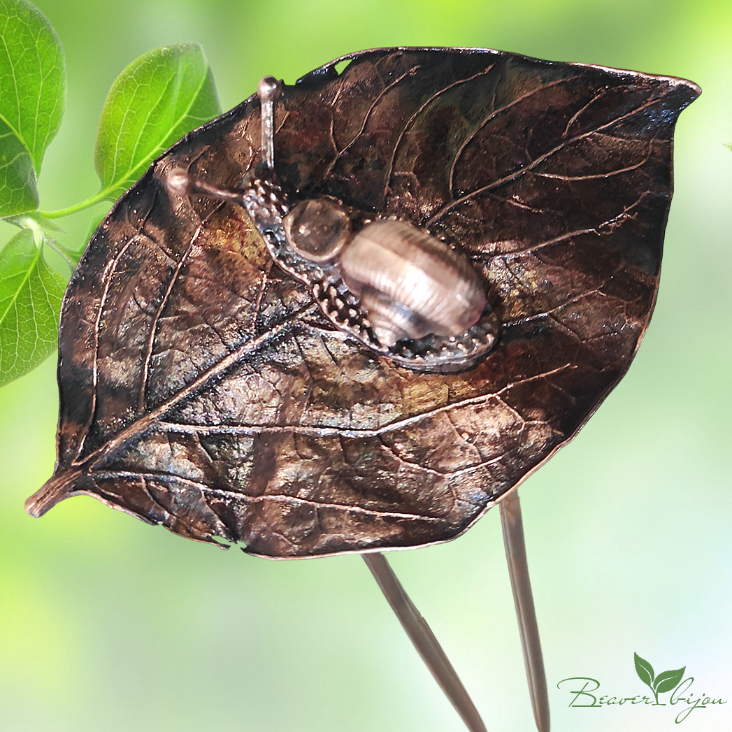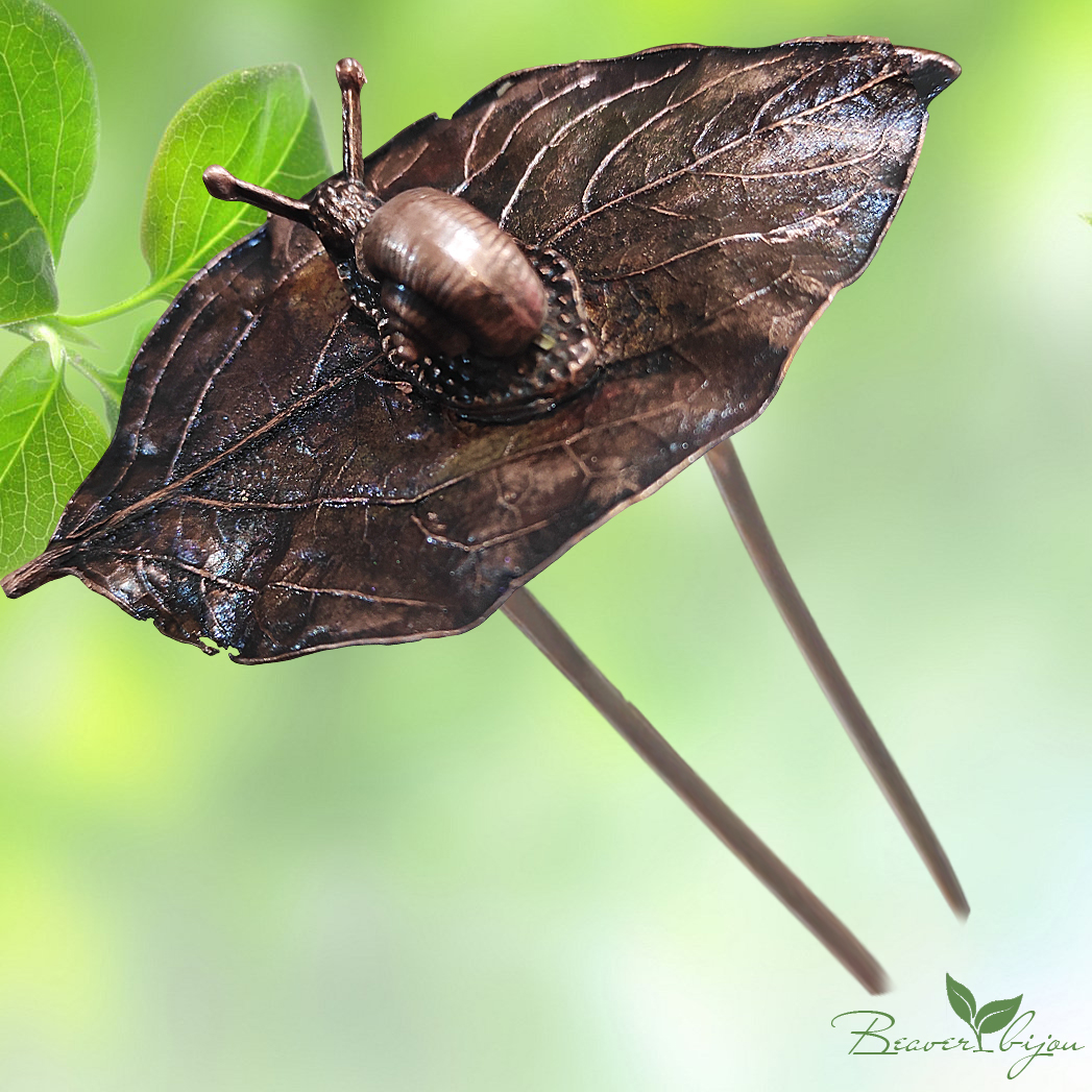 Эта шпилька для волос — очень необычное украшение! Изготовленная вручную из живого омедненного листика с милой медной улиткой, она станет идеальным аксессуаром для обладательниц длинных волос. Стильная и удобная, шпилька подчеркнет вашу индивидуальность и добавит шарма любому образу.