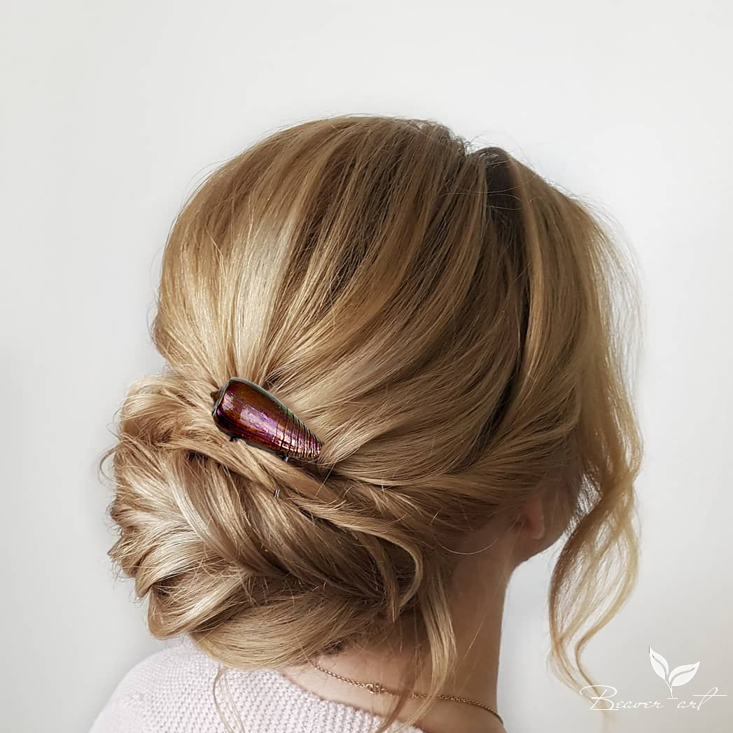 Эта эффектная шпилька для волос, изготовленная из настоящей ракушки, покрытой медным слоем методом гальванопластики, станет прекрасным дополнением к любому образу. Авторская работа, этот модный аксессуар подойдет как для себя, так и в качестве оригинального подарка. Шпилька легкая и надежно фиксирует волосы. Омедненная шпилька покрыта сияющей патиной.