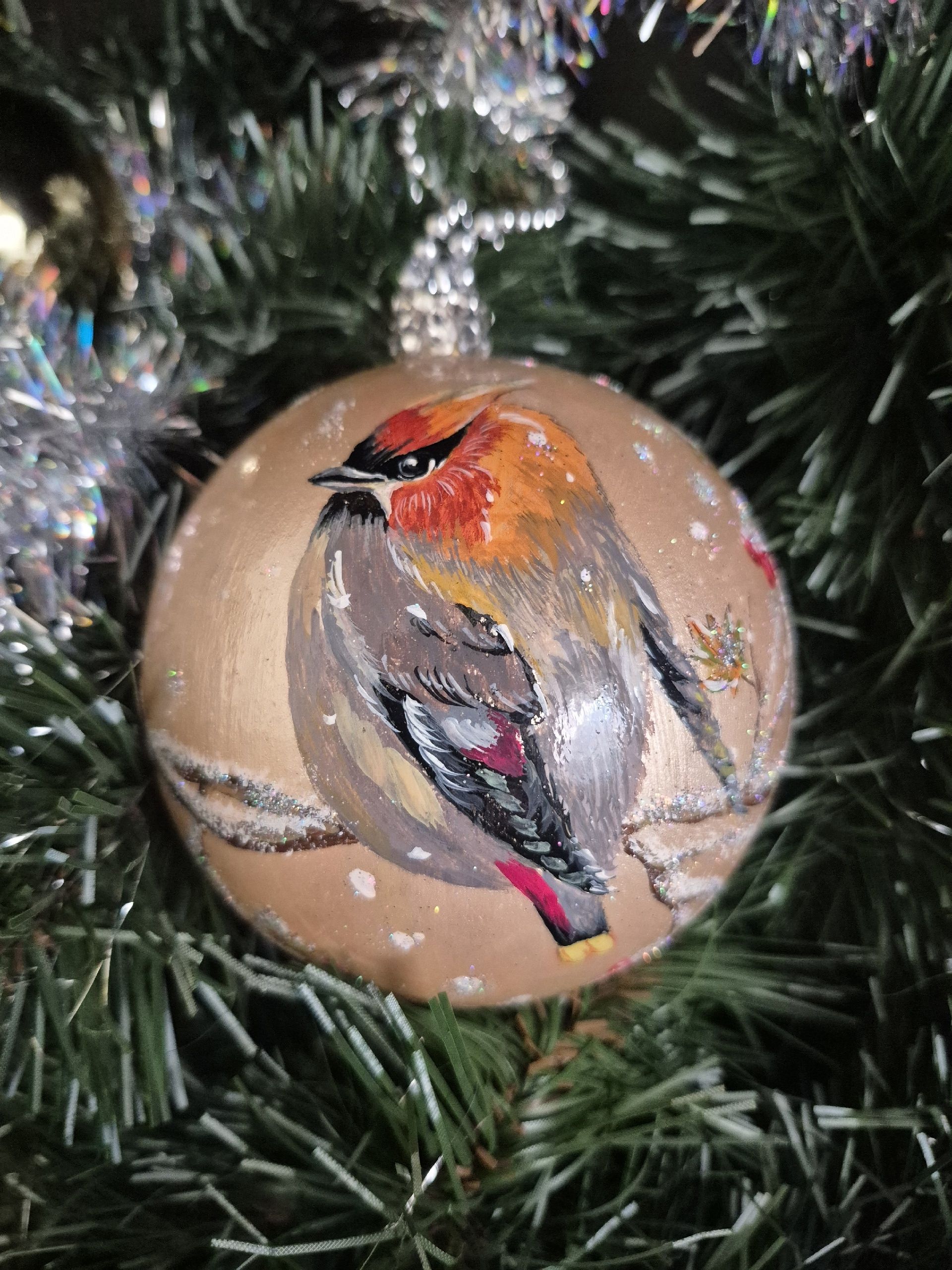 Новогоднее украшение ёлочный шар «Свиристели»