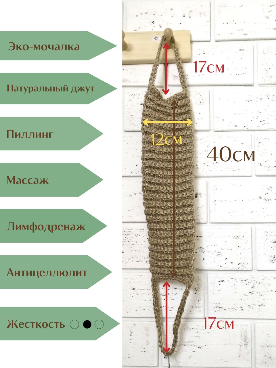 LeS Джут/ Мочалка натуральная для душа тела жесткая джутовая 50 см ручной работы из джута