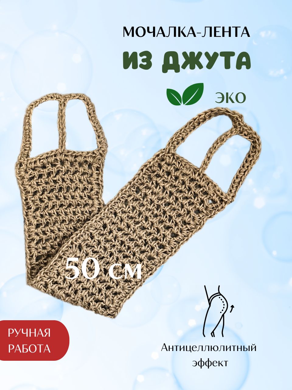 Мочалка натуральная для душа бани жесткая джутовая 50/40 см ручной работы вязаная крючеком из джута