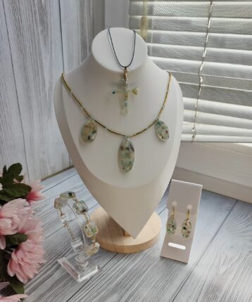 Сочетание прозрачности ювелирной смолы и природной красоты амазонита создаёт эффект лёгкости и элегантности. Эти украшения станут изюминкой вашего образа.