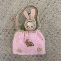 3000,00 ₽Кукла — школьница, связанная крючком из хлопковой пряжи, голова поворотная на проволочном каркасе.